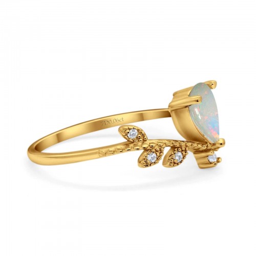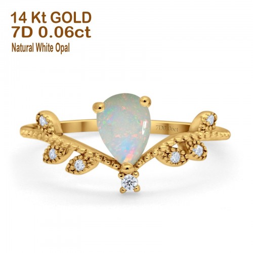 14K Yellow Gold Pear Natural White Opal 0.06ct G SI Diamond Engagement Ring Size 6.5