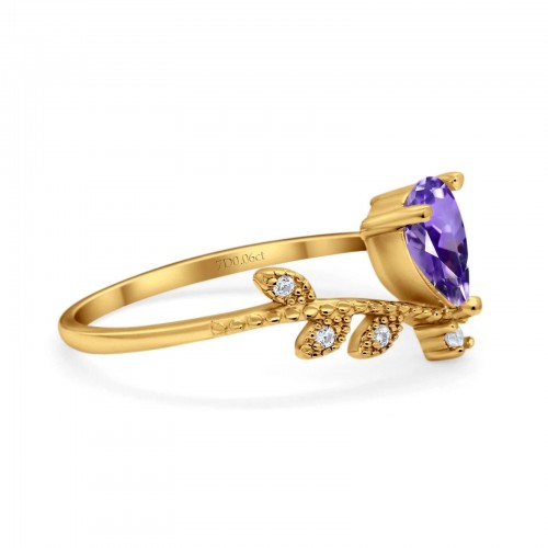 14K Yellow Gold Pear Natural Amethyst 0.77ct G SI Diamond Engagement Ring Size 6.5