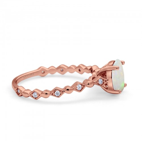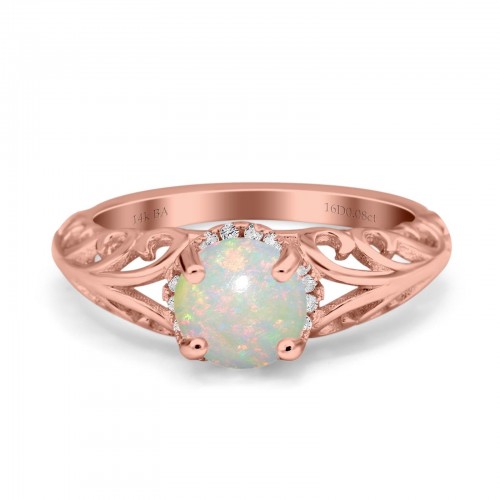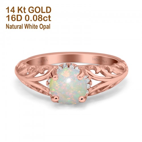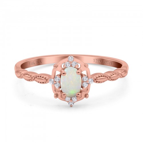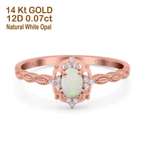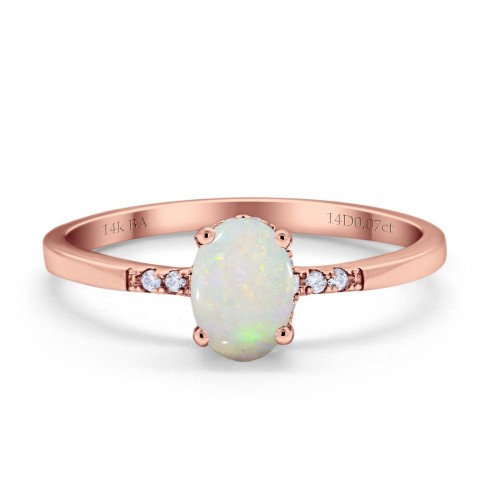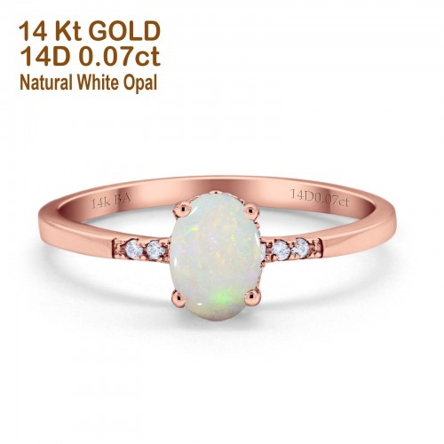 14K Rose Gold 0.07ct Oval 8mmx6mm G SI Natural White Opal Diamond Engagement Wedding Ring Size 6.5