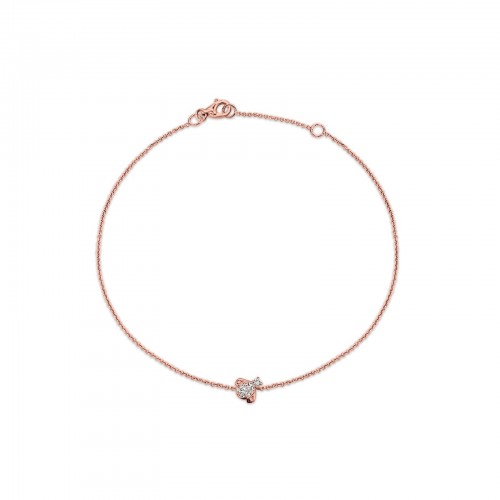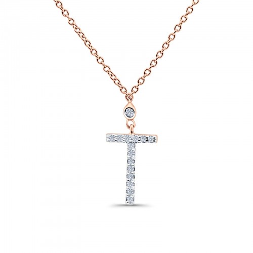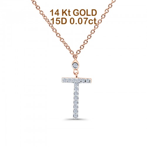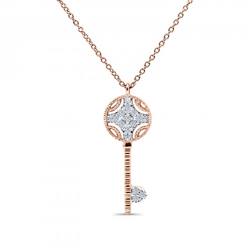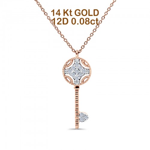 14K Rose Gold 0.08ct Round Shape Diamond Key Pendant Chain Necklace 18″ Long