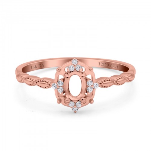 14K Rose Gold 0.07ct Oval 6mmx4mm G SI Semi Mount Diamond Engagement Wedding Ring Size 6.5