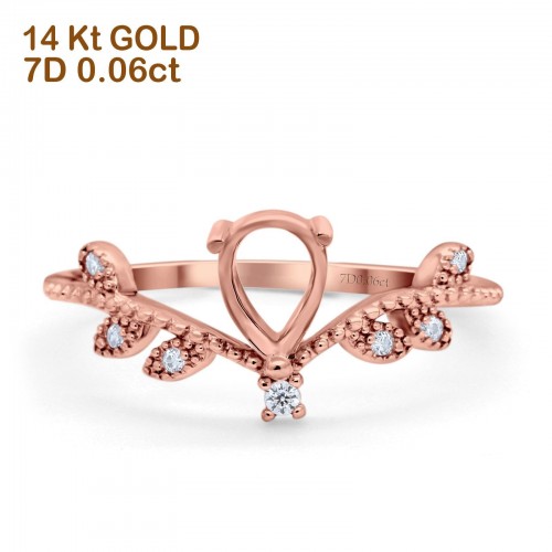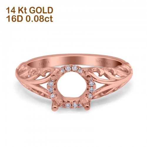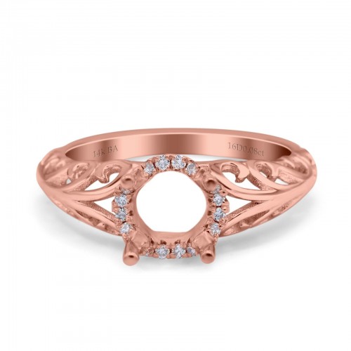 14K Rose Gold 0.06ct Semi Mount Diamond Engagement Ring Size 6.5