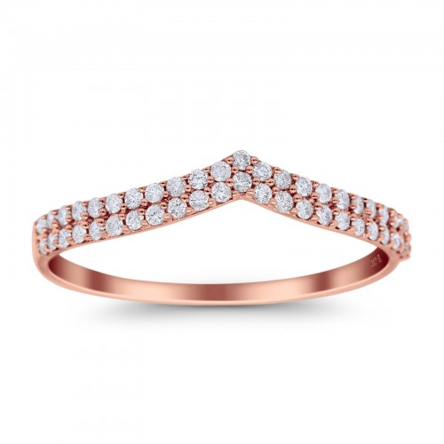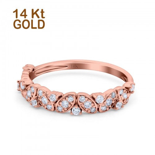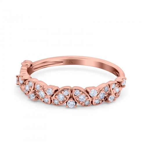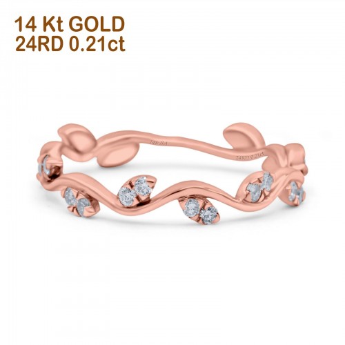 14K Rose Gold 0.21ct Round Pave 4mm Band G SI Leaf Eternity Diamond Engagement Wedding Ring Size 6.5