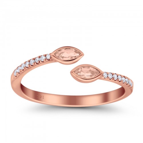 14K Rose Gold 0.21ct 2 Marquise Morganite 6.5mm G SI Diamond Engagement Wedding Ring Size 6.5