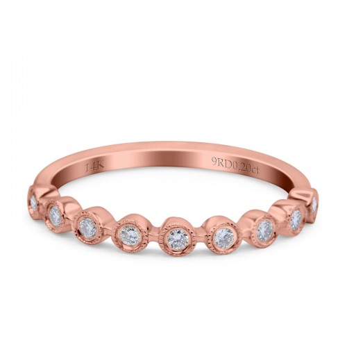 14K Rose Gold 0.20ct Round 3mm G SI Half Eternity Diamond Bands Engagement Wedding Ring Size 6.5