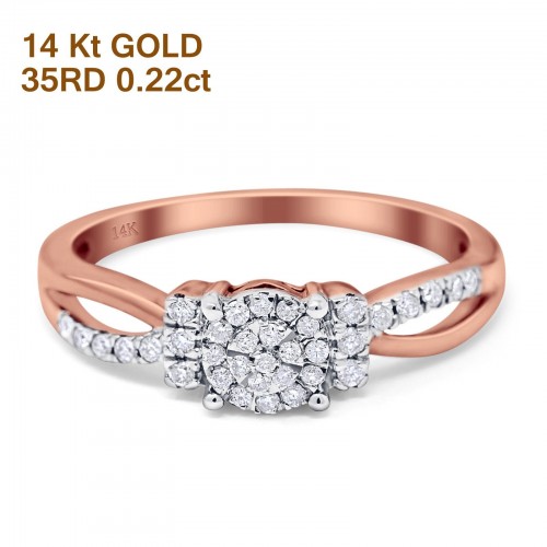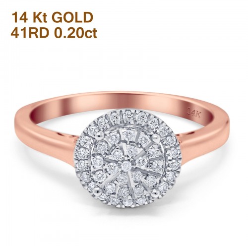 14K Rose Gold 0.20ct Round 9mm G SI Diamond Engagement Wedding Ring Size 6.5