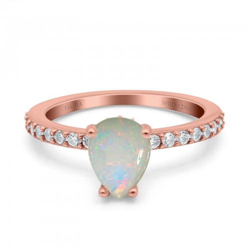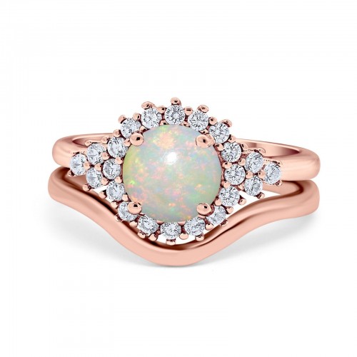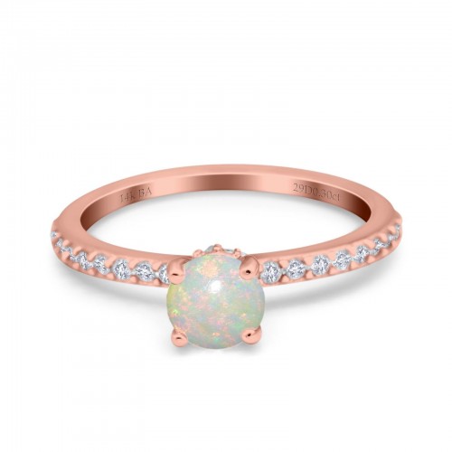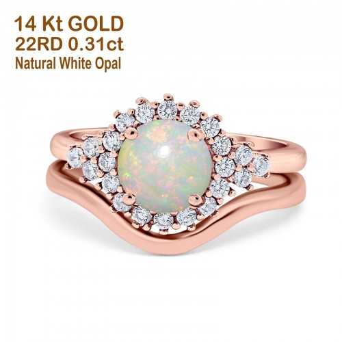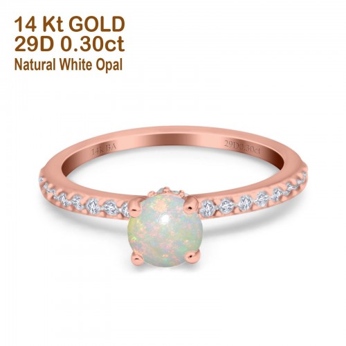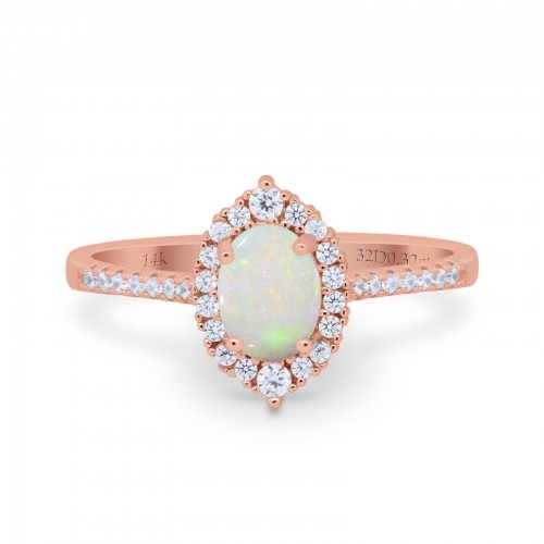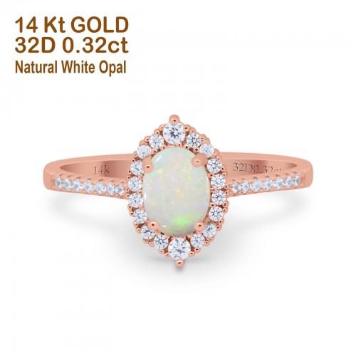 14K Rose Gold 0.32ct Oval Natural White Opal G SI Diamond Engagement Ring Size 6.5