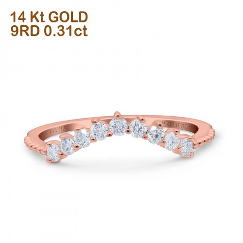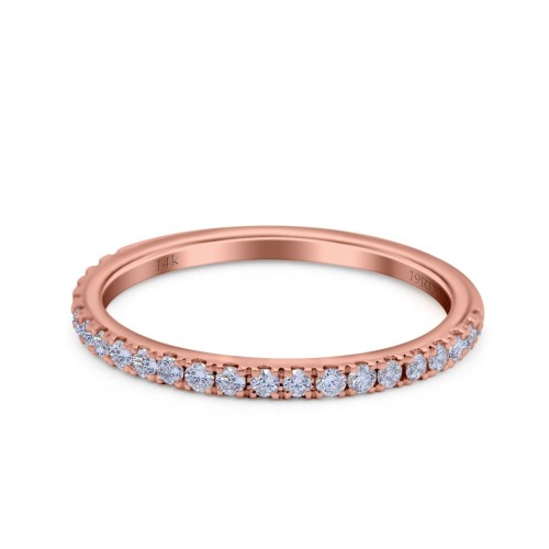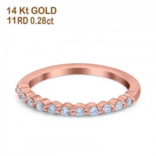 14K Rose Gold 0.28ct Diamond Half Eternity Round 2mm Stacking Band Engagement Ring Size 6.5