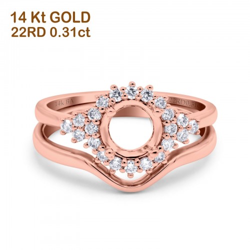 14K Rose Gold 0.30ct Round 6mm G SI Semi Mount Diamond Engagement Wedding Ring Size 6.5