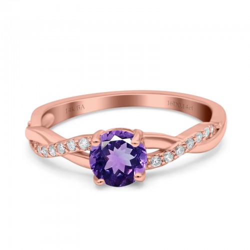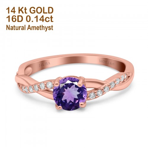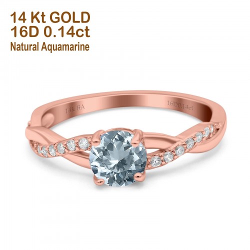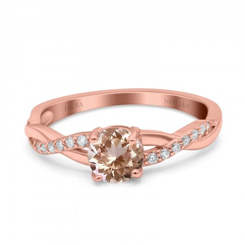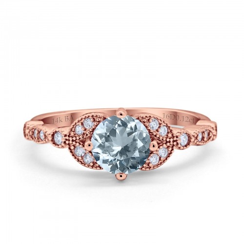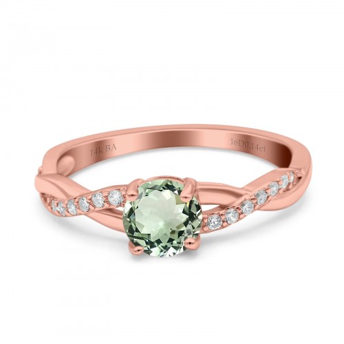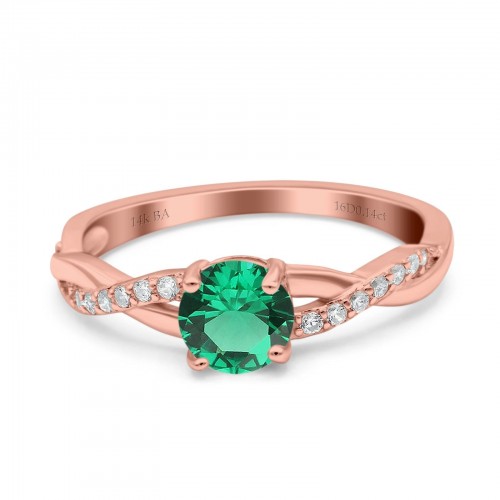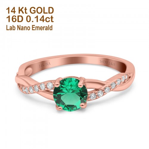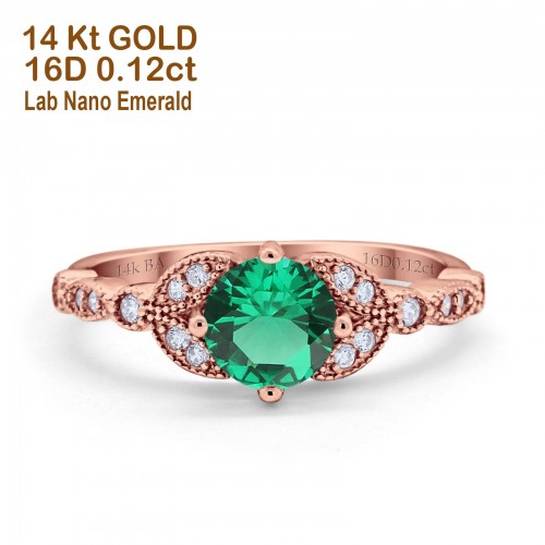 14K Rose Gold 0.96ct Round Art Deco 6mm G SI Nano Emerald Diamond Engagement Wedding Ring Size 6.5
