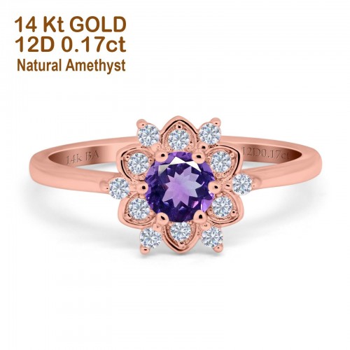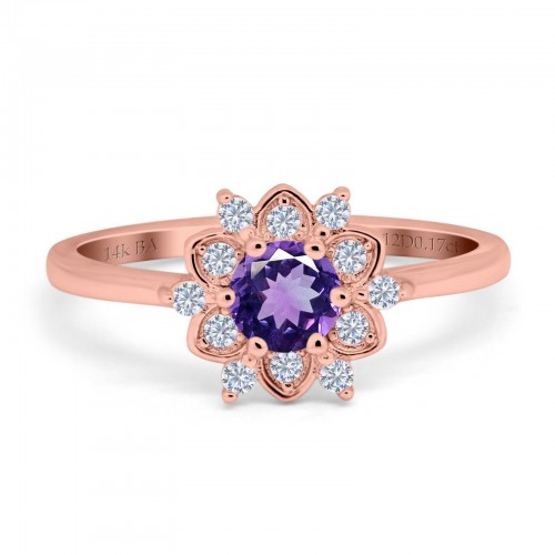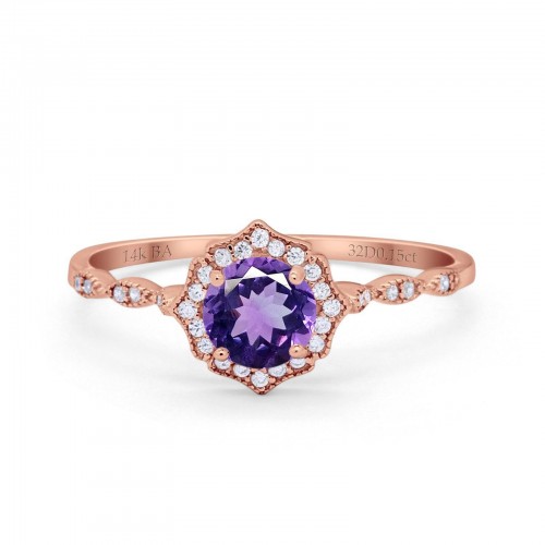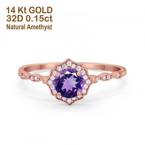 14K Rose Gold 1.01ct Round 6mm G SI Natural Amethyst Diamond Engagement Wedding Ring Size 6.5