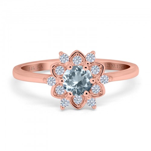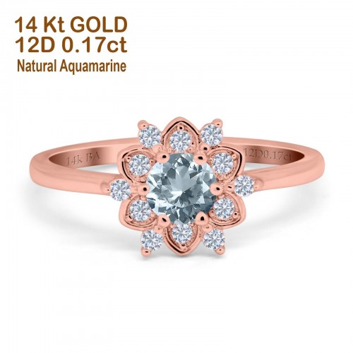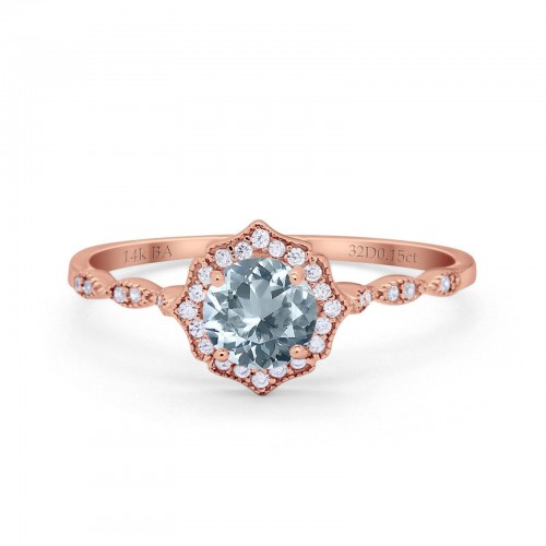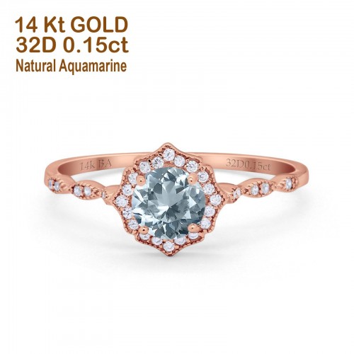 14K Rose Gold 1.01ct Round 6mm G SI Natural Aquamarine Diamond Engagement Wedding Ring Size 6.5