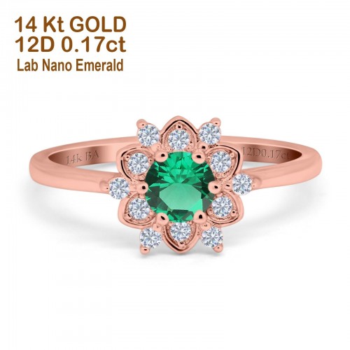 14K Rose Gold 1.01ct Round 6mm G SI Nano Emerald Diamond Engagement Wedding Ring Size 6.5