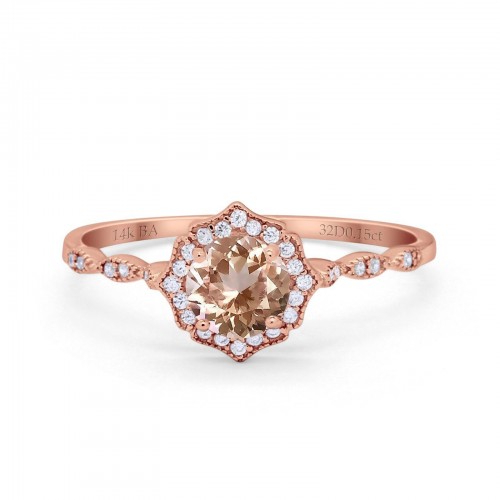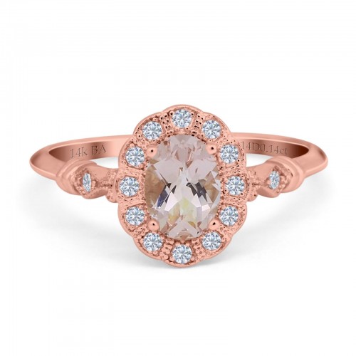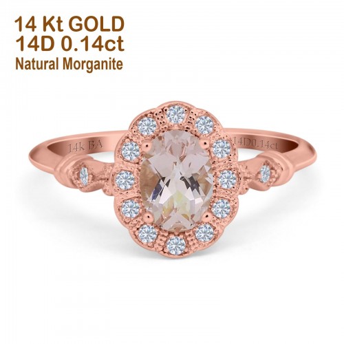 14K Rose Gold 0.9ct Oval 7mmx5mm G SI Natural Morganite Diamond Engagement Wedding Ring Size 6.5
