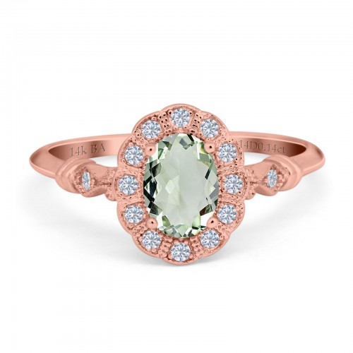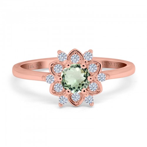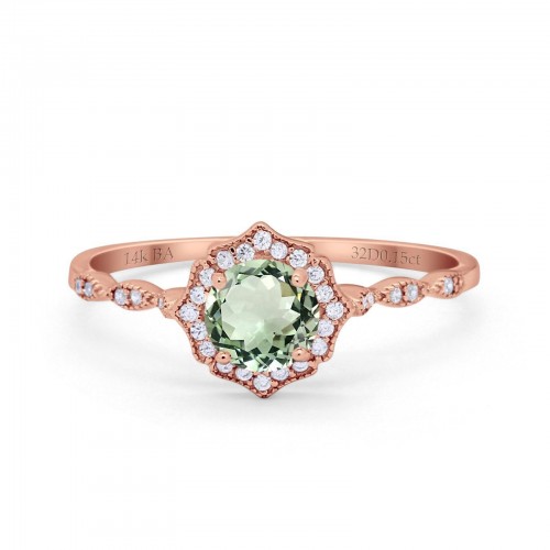 14K Rose Gold 1.01ct Round 6mm G SI Natural Green Amethyst Diamond Engagement Wedding Ring Size 6.5