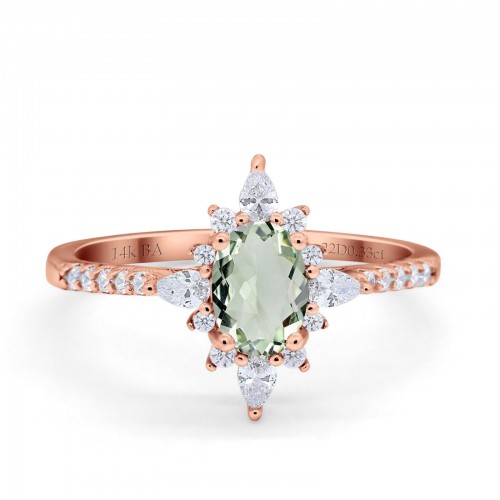 14K Rose Gold 1.53ct Oval Natural Green Amethyst G SI Diamond Engagement Ring Size 6.5