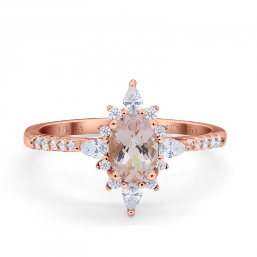 14K Rose Gold 1.53ct Oval Natural Morganite G SI Diamond Engagement Ring Size 6.5