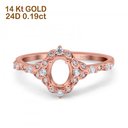 14K Rose Gold Round Semi Mount 0.18ct Diamond Engagement Ring Size 6.5