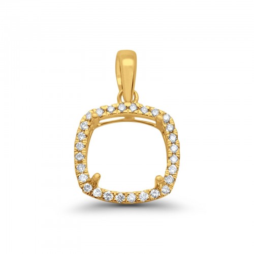 14K Yellow Gold .10ct Square Princess Diamond Semi Mount Pendant