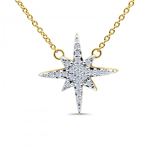 14K Yellow Gold 0.10ct Round Shape Diamond Starburst Pendant Chain Necklace 18″ Long