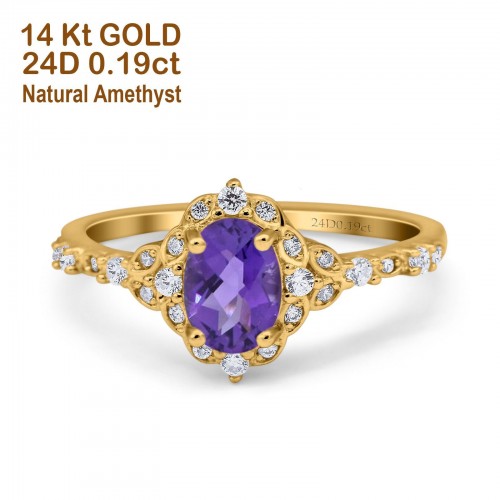 14K Yellow Gold Oval Natural Amethyst 0.95ct G SI Diamond Engagement Ring Size 6.5