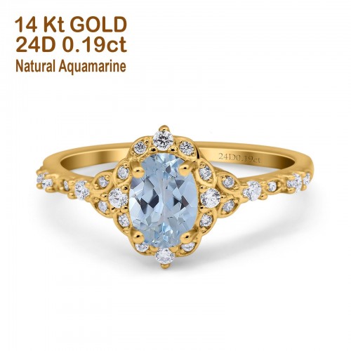 14K Yellow Gold Oval Natural Aquamarine 0.95ct G SI Diamond Engagement Ring Size 6.5