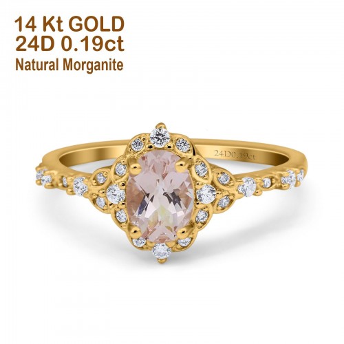 14K Yellow Gold Oval Natural Morganite 0.95ct G SI Diamond Engagement Ring Size 6.5