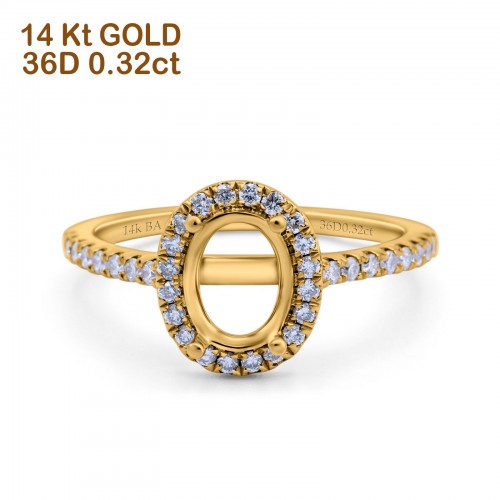 14K Yellow Gold Oval Semi Mount 0.32ct Diamond Engagement Ring Size 6.5