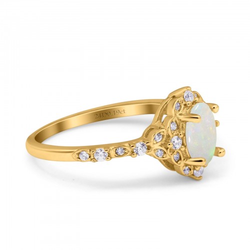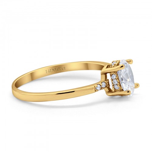14K Yellow Gold Oval Natural White Opal 0.19ct G SI Diamond Engagement Ring Size 6.5