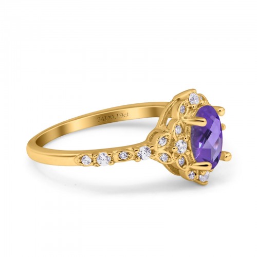 14K Yellow Gold Oval Natural Amethyst 0.95ct G SI Diamond Engagement Ring Size 6.5