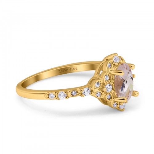 14K Yellow Gold Oval Natural Morganite 0.95ct G SI Diamond Engagement Ring Size 6.5
