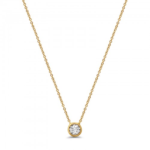 Diamond Solitaire Pendant 14K Yellow Gold .07ct Round 18 Inch Necklace