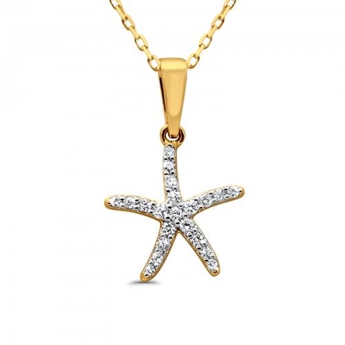 14K Yellow Gold Starfish Necklace .14ct Diamond 18 Inch Long