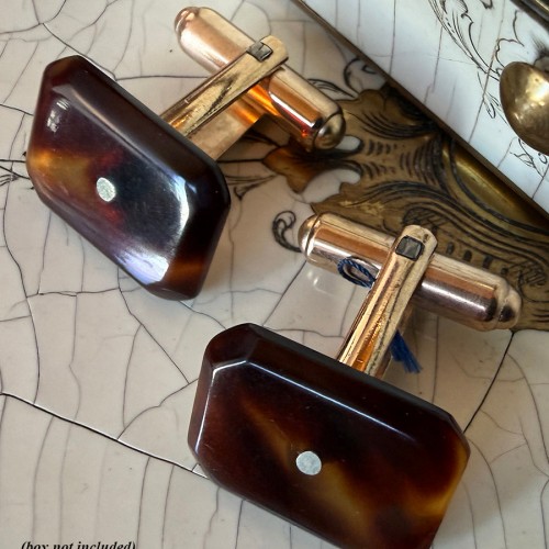 Vintage Unisex Cufflinks, 12k Gold Filled and Beautiful Old Tortoise Shell, Beveled and EC