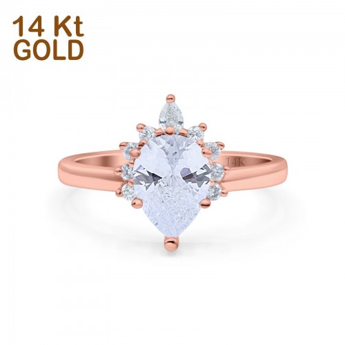 14K Rose Gold Teardrop Art Deco Pear Bridal Simulated CZ Wedding Engagement Ring Size 7 14K Gold