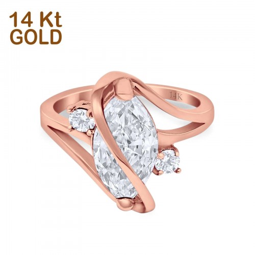 14K Rose Gold Swirl Fashion Marquise Bridal Simulated CZ Wedding Engagement Ring Size 7 14K Gold