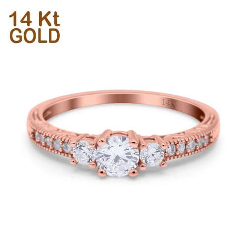 14K Rose Gold Round Three Stone Bridal Wedding Engagement Ring Simulated CZ Size-7 14K Gold