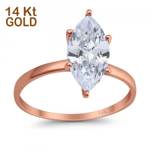 14K Rose Gold Solitaire Marquise Bridal Wedding Engagement Ring Simulated CZ Size-7 14K Gold