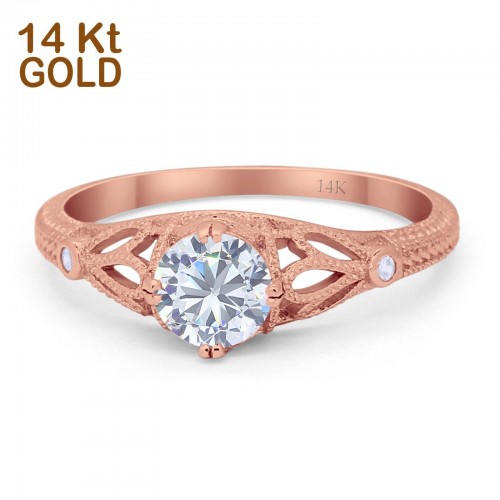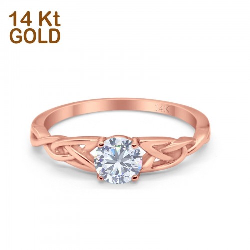 14K Rose Gold Round Solitaire Trinity Bridal Simulated CZ Wedding Engagement Ring Size-7 14K Gold