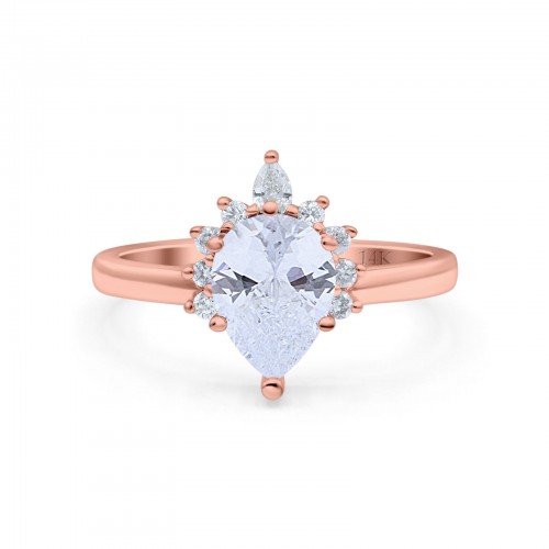 14K Rose Gold Teardrop Art Deco Pear Bridal Simulated CZ Wedding Engagement Ring Size 7 14K Gold