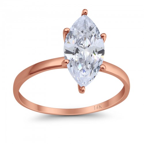 14K Rose Gold Solitaire Marquise Bridal Wedding Engagement Ring Simulated CZ Size-7 14K Gold