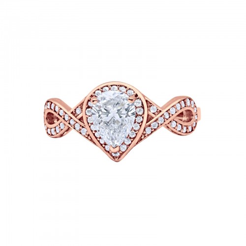14K Rose Gold Teardrop Art Deco Wedding Ring Simulated Cubic Zirconia Size-7 14K Gold