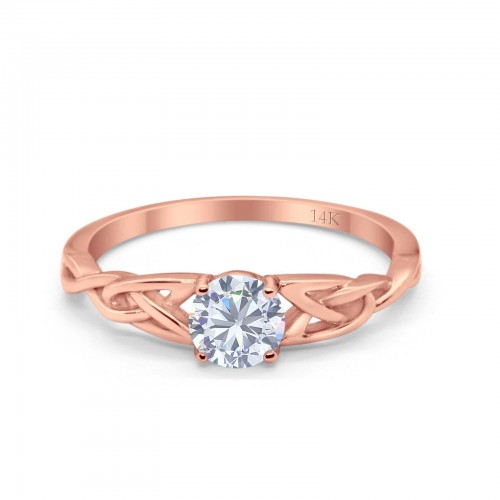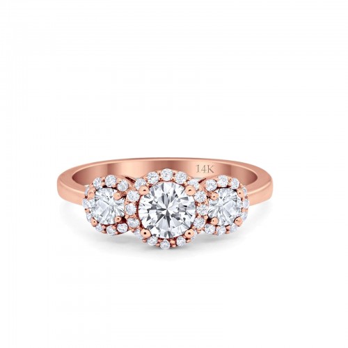 14K Rose Gold Round Solitaire Trinity Bridal Simulated CZ Wedding Engagement Ring Size-7 14K Gold