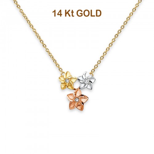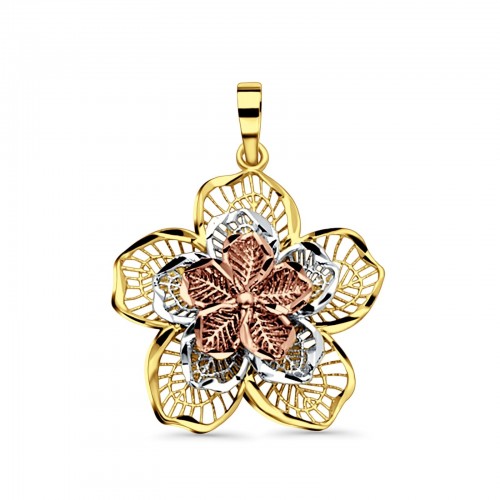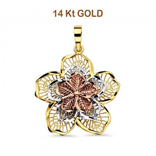 14K Tri Color Gold Filigree Flower Pendant 26mmX23mm 2.1 grams