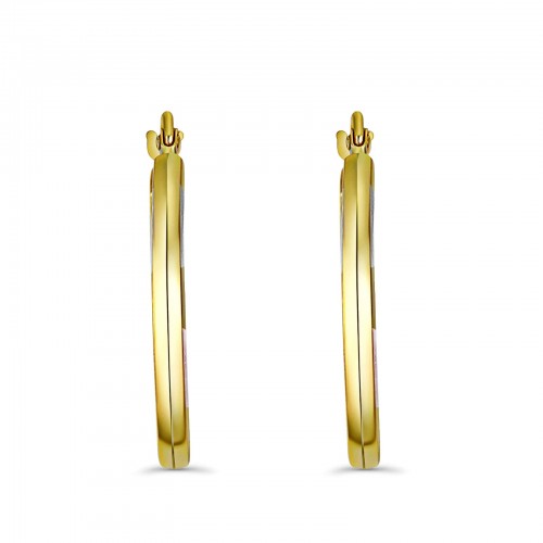 14K Tri Color Gold DC Hoop Earrings, Best Anniversary Birthday Gift for Her