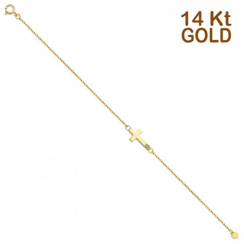 14K Yellow Gold Micro Pave CZ Puff Necklace 17″ + 1″ Extension