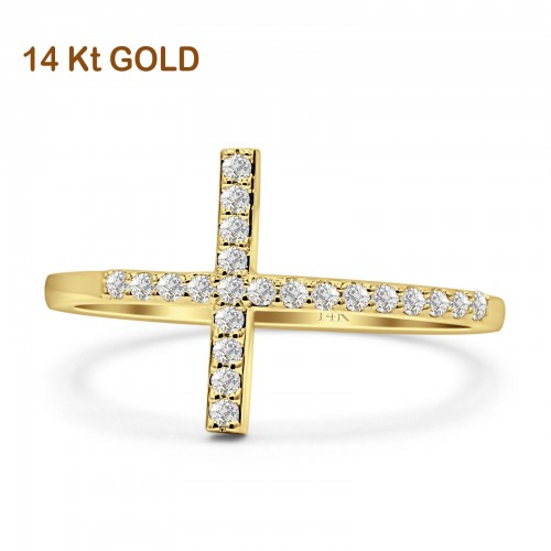 14K Yellow Gold Round Sideways Eternity Simulated CZ Wedding Engagement Cross Ring Size-7