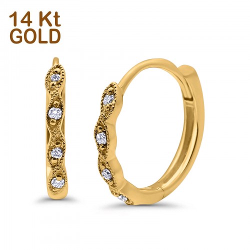 14K Yellow Gold Round Simulated Cubic Zirconia Hoop Huggie Earrings