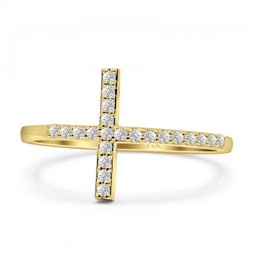 14K Yellow Gold Round Sideways Eternity Simulated CZ Wedding Engagement Cross Ring Size-7