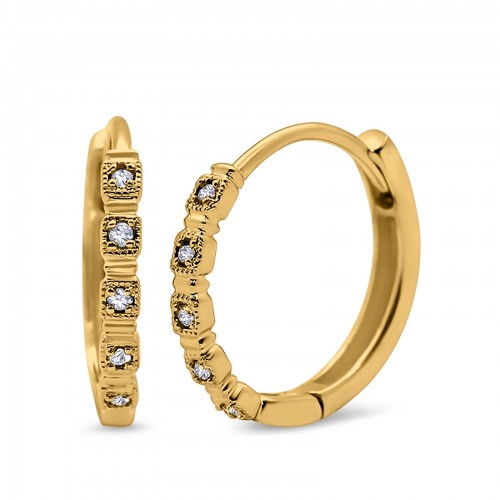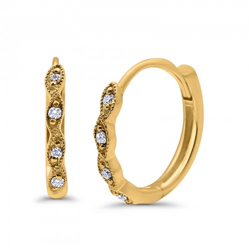 14K Yellow Gold Round Simulated Cubic Zirconia Hoop Huggie Earrings